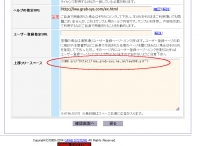 クリックして拡大 | | 基本設定の中の一番したに「上部フリースペース」という項目があります。ここがLWA-300オークションページの上部の表示を記述している設定項目です。赤印は元々表示されているロゴが設定されている場所です。この画像表示のHTMLタグを先ほどメモしたタグに書き換えて下さい。 |